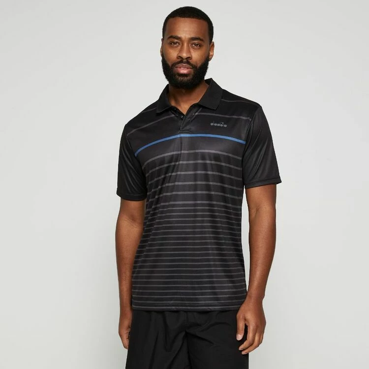 Diadora Tech Sublimated Stripe Polo Black Stripe