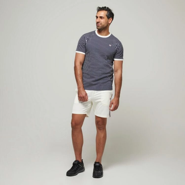 The FILA Wyatt Ringer Heritage Jersey Tee comes designed in a stylish pinstripe design, featuring the brand’s iconic F-Box logo embroidered on the chest. The ribbed neck and cuffs, regular fit and knitted fabric allow extra comfort. Wear it with FILA shorts or track pants for a complete sporty look this season.