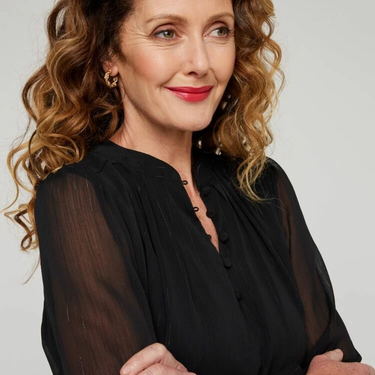 Dress up any outfit with this timeless blouse from Jane Lamerton. This exclusive design for Harris Scarfe is perfect for all occasions. It features a classic front tuck and button detail with fine lurex stripe, giving it an extra touch of sophistication. It pairs effortlessly with trousers and skirts for a complete, sophisticated look.