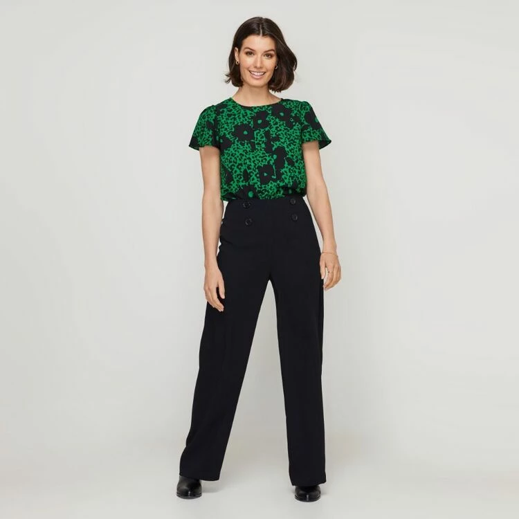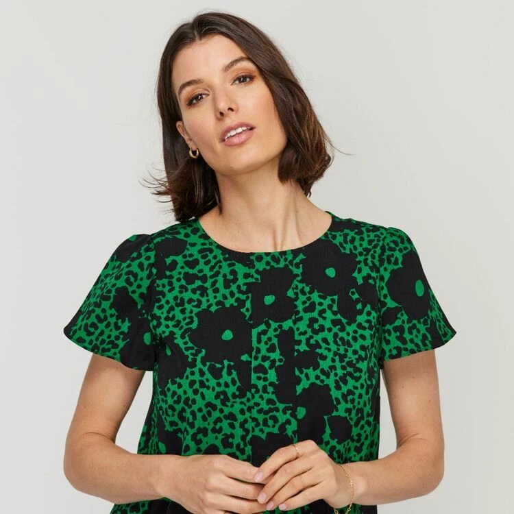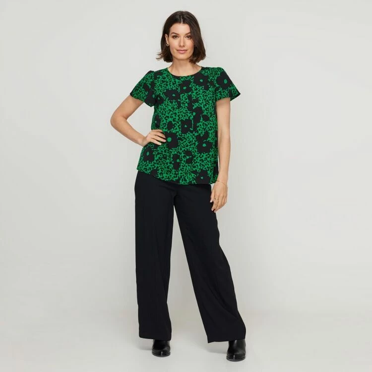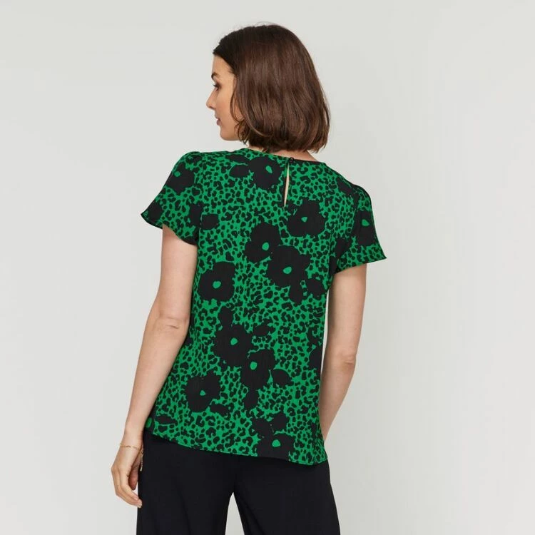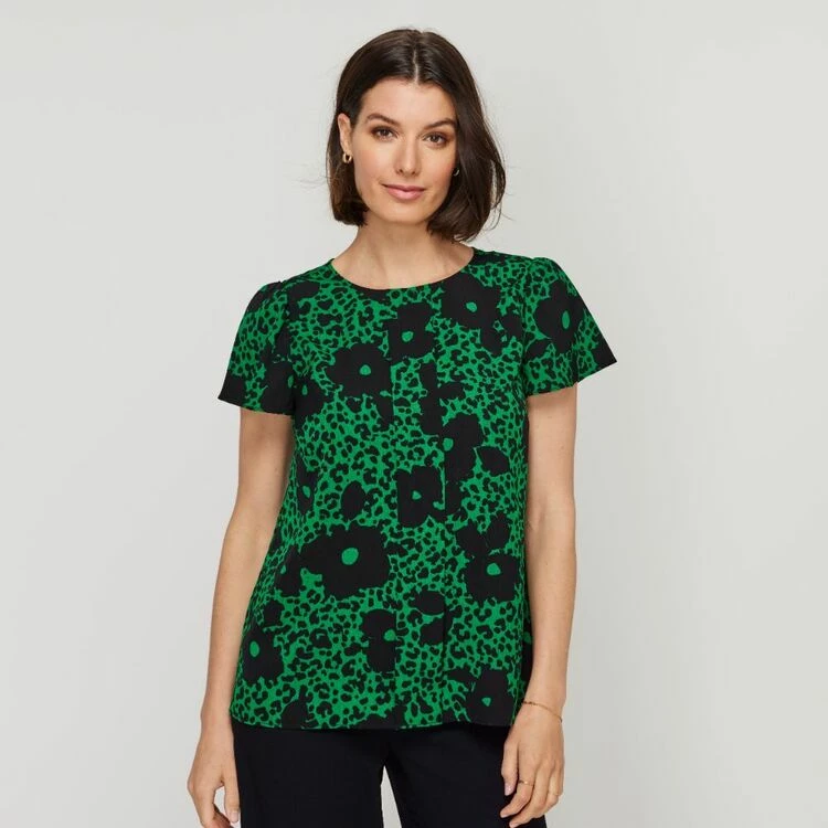 Jane Lamerton Pleat Front Top Green Floral Green Floral