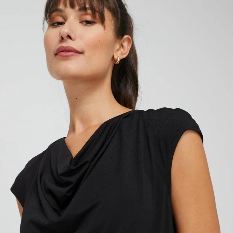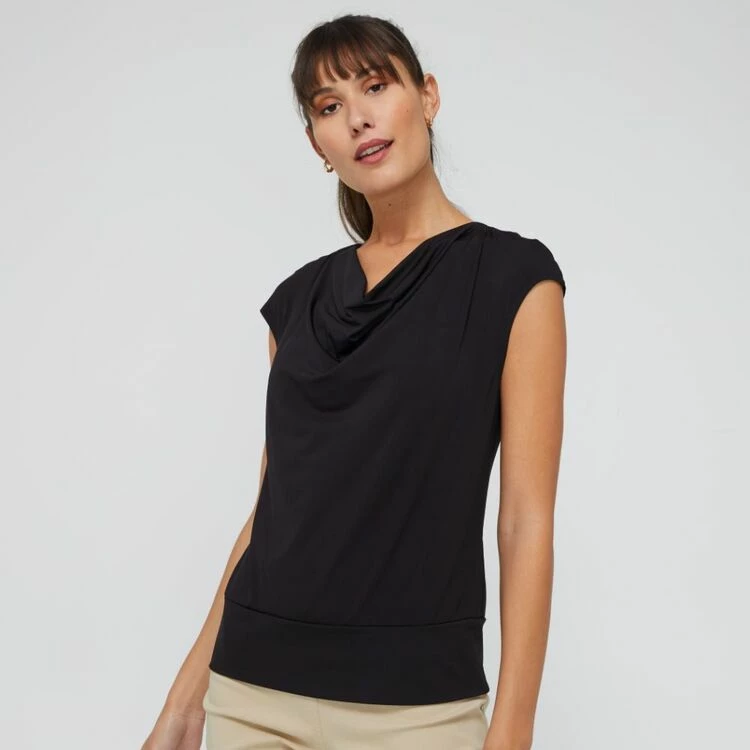 Jane Lamerton Women’s Cowl Neck Basque Top – Black Black