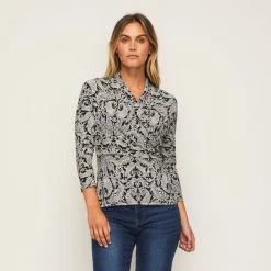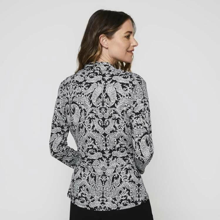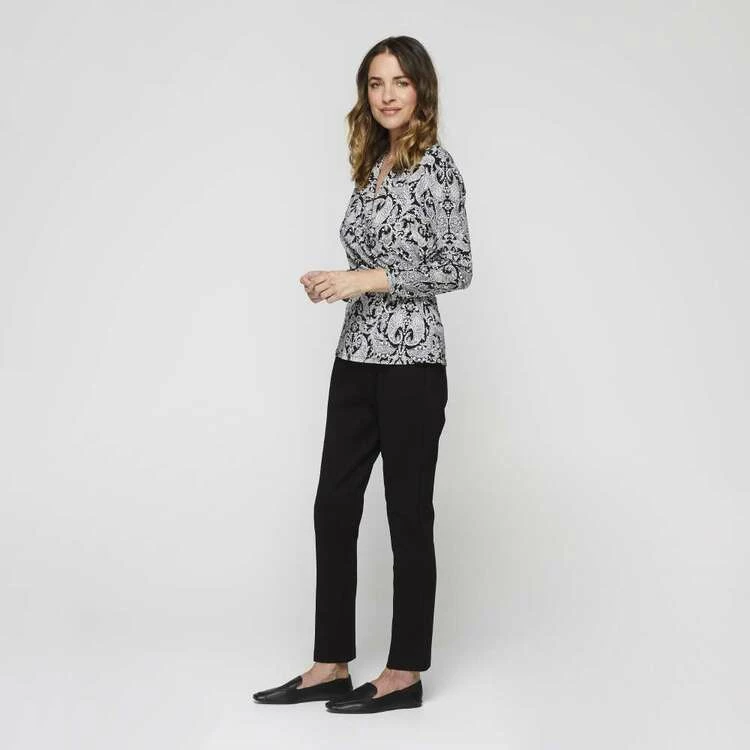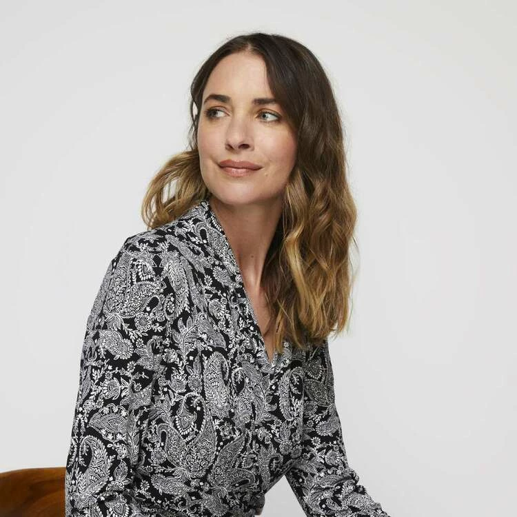 Designed exclusively for Harris Scarfe, the Jane Lamerton Wrap Top features a pretty paisley print in classic black and white, perfect for both casual wear and special occasions. This easy-to-wear mock wrap top has an effortless style that pairs well with any of Jane’s pants and skirts to complete your outfit.
