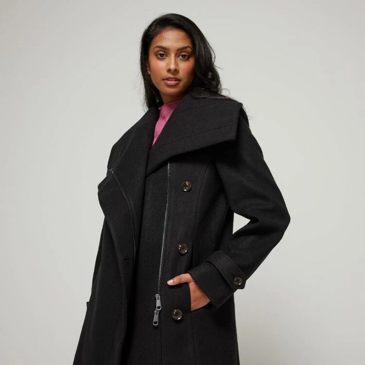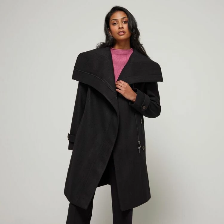 JB Jayson Brunsdon Women’s Shawl Collar Zip Trim Coat Black