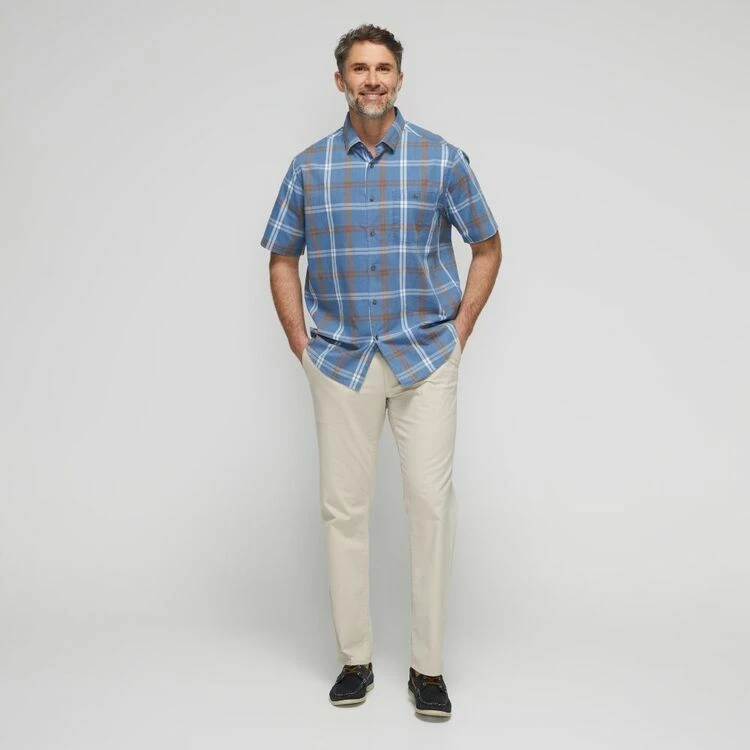 JC Lanyon Ellis Indigo Check Short Sleeve Shirt Dark Khaki