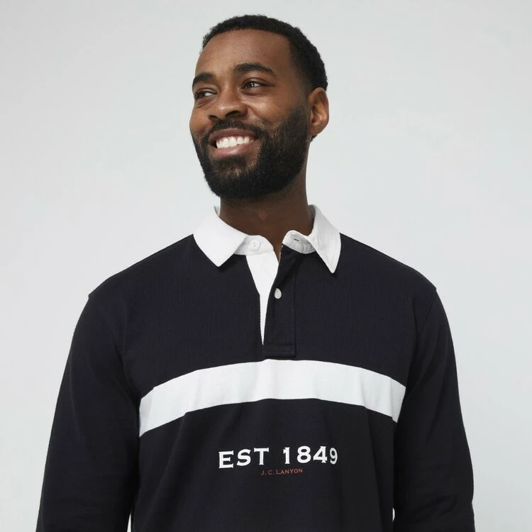 Bring timeless style to your warddrobe this season with the iconic J.C. Lanyon Boone 1849 Printed Rugby Polo. The Rugby Top is the defining statement on masculinity and softness and comfortability as well. Since becoming a fashion piece off the field in the 1970s, the Rugby Shirt is a stylish building block for outfits whether it be dressed down at home or going for that smart-casual look. Pair it with jeans or chinos to complete the look. Shop J.C. Lanyon today at Harris Scarfe!