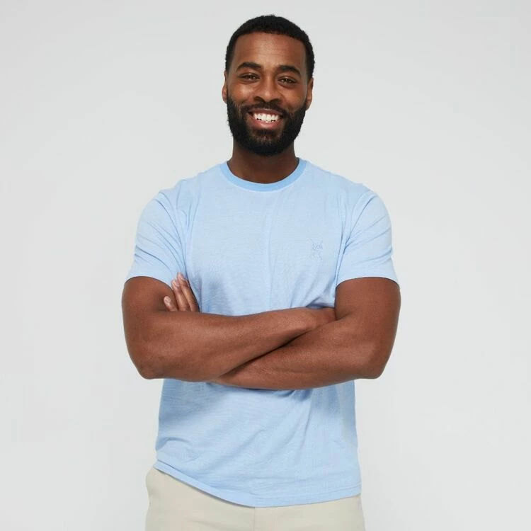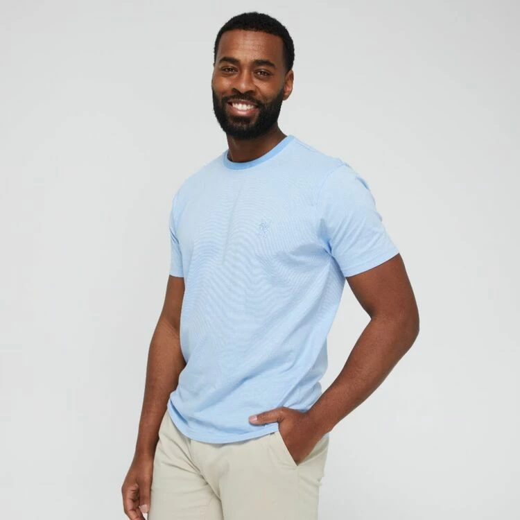 The Jeff Banks Feather Stripe Logo Crew Tee is an ideal summer essential this season that is perfect for wearing on the weekend or in casual workplaces. It offers ultimate comfort and breathability, as well as a classic style that features minimal textured stripes and the brand’s logo subtly embroidered at the front. Wear it with a pair of chino shorts and loafers for an elevated summer outfit.
