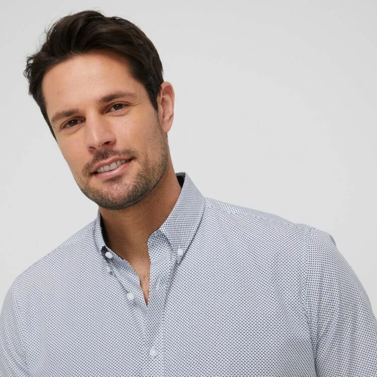 The Jeff Banks Fishies Print Short Sleeve Shirt is a stylish and fun wardrobe option for the warmer weather. Featuring a detailed print of tiny fish, this white and navy shirt includes a button down collar and a contrasting inner collar stand for a classic tailored look. Complete the look with your favourite shorts or trousers for an effortlessly smart-yet-casual outfit!
