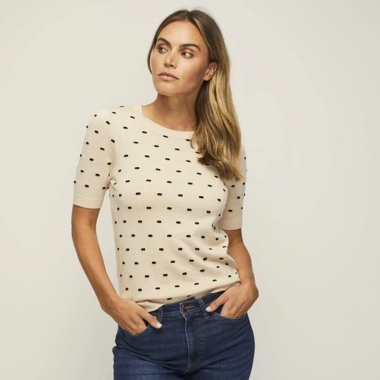 The Khoko Smart Puff Sleeve Sweater should be on your season’s checklist with its stylish crew neckline, short sleeves with ribbed cuffs and classic fit. Made from soft to touch cotton fabric, this wardrobe essential also features an adorable spotty print that can be easily paired with jeans or pants for a casual, laidback look.