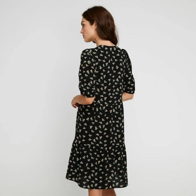 Khoko Smart Tiered Tunic Dress Dainty Print Black Black