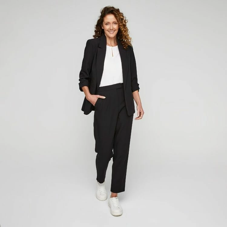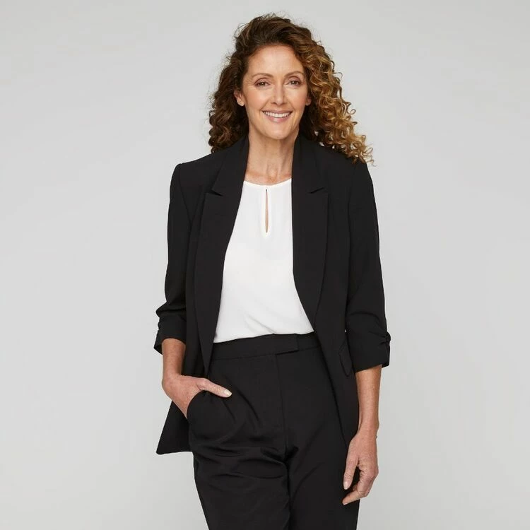 The simple and stylish Khoko Smart Women’s Core Blazer is an essential workwear wardrobe staple featuring ¾ sleeves, a classic notch collar and functional side pockets. The blazer is cut in a relaxed fit for comfort while working all day. Pair this with some Khoko Smart split neck top, angle pocket pants and low heels to complete a comfy formal look.
