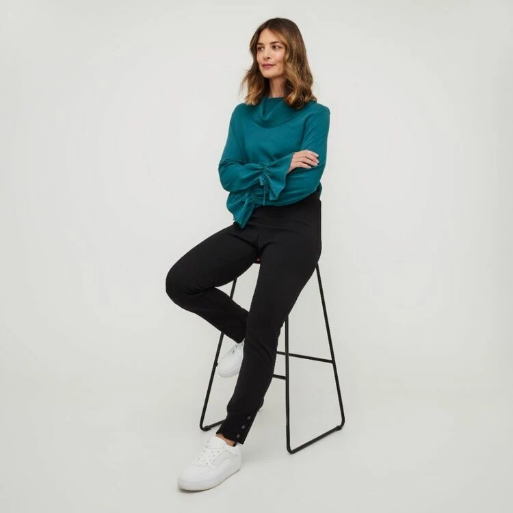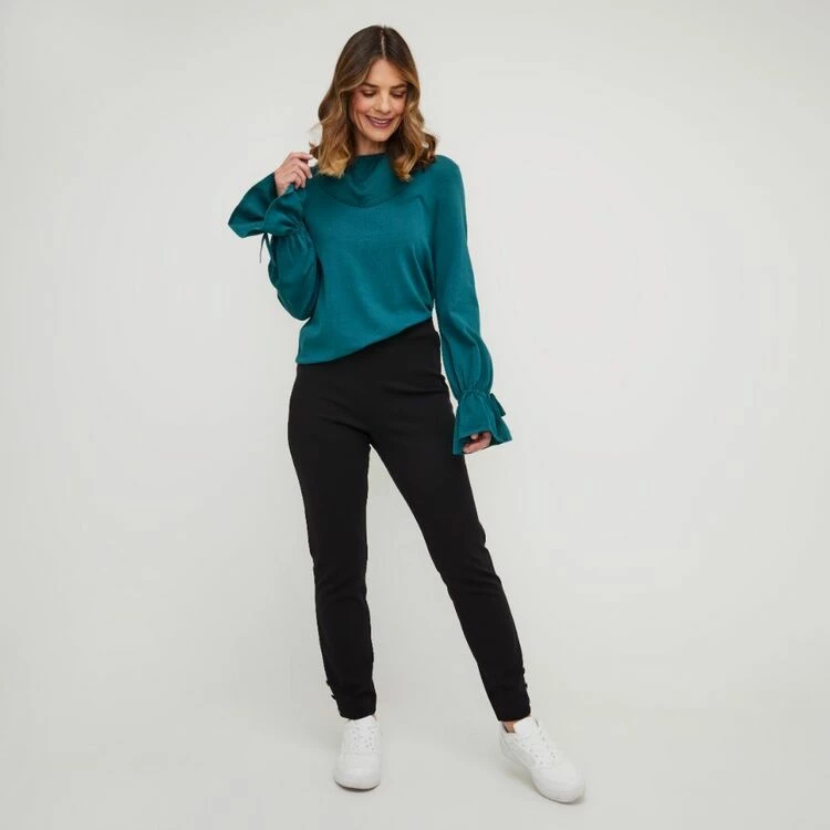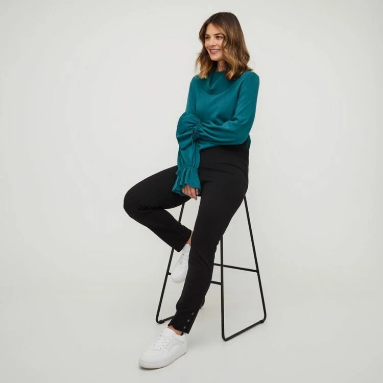 These Leona Edmiston Ruby Leggings, designed exclusively for Harris Scarfe, will instantly become your go-to bottoms. Crafted from stretchy crepe fabric, they are cut in a flattering skinny fit and feature a covered waistband with a unique button design detail at the hem. Add some effortless style to your look today with these beautiful leggings.