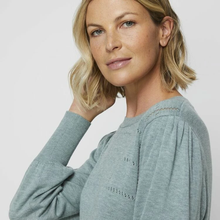 Stay cosy with the Leona Edmiston Check Stitch Knit, designed exclusively for Harris Scarfe by Leona Edmiston. This jumper adds a feminine sensibility to your wardrobe, being knitted with a check stitch pointelle detail and featuring a rounded ribbed neck, high rib cuff and a puff long sleeve. This statement piece is ideal for smart casual occasions where you want to keep cosy without compromising on style.