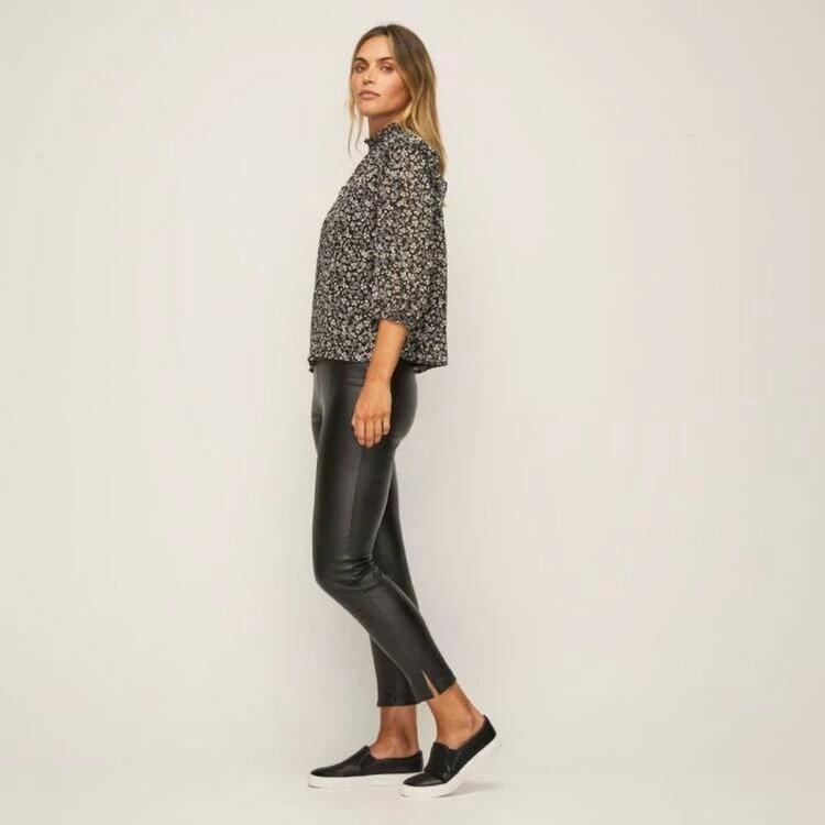 Shirred collar detail. Long sleeve. Woven.