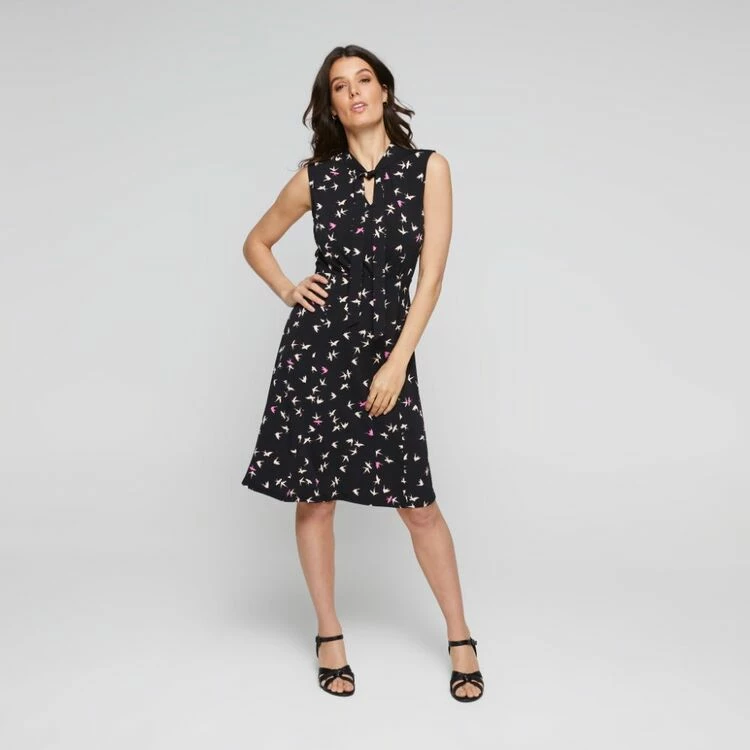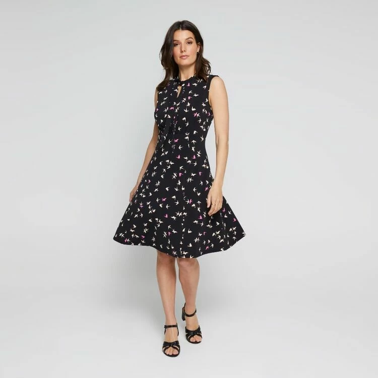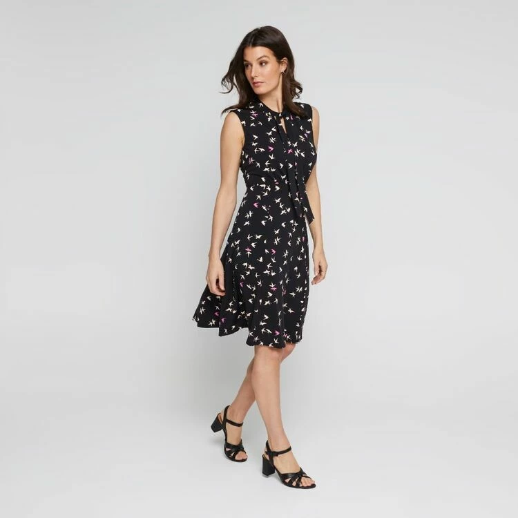 Designed exclusively for Harris Scarfe by Australian Designer Leona Edmiston, the Tie Neck Jersey Dress features a scarf like neck tie design and an elasticated waist with contrast pipping details. The dress offers a flattering and flexible fit for any body shape. Pair with heels for work, or sneakers for a lunch date with the girls. Available in a scattered bird print.
