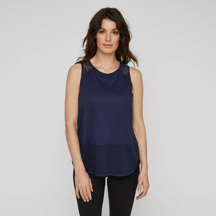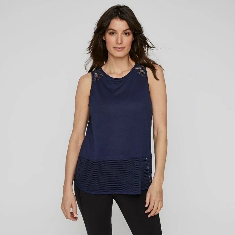 The LMA Active Women’s Mesh Insert Tank features mesh insert at front and back shoulders as well as the hem. The hem is curved with a slightly lower back and overlapping side seams. This tank is made with soft to touch fabric. Shop the whole collection online or in-store at Harris Scarfe today!