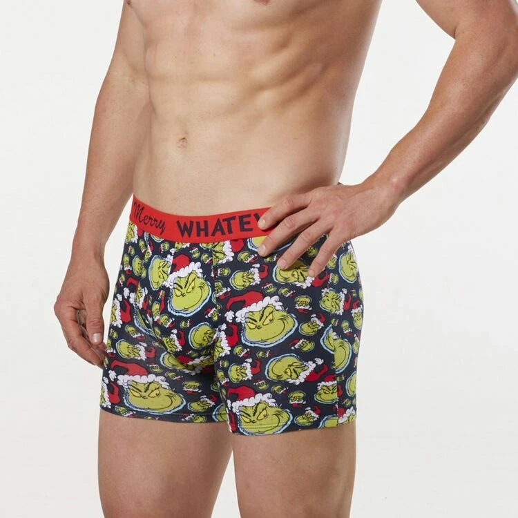 The Mitch Dowd Grinch Faces Long Leg Trunk makes for the perfect gift if you know someone who’s always a Grinch at Christmas! They feature the classic Grinch face print with a red waistband and are made from a soft blend of fabrics. They are also designed in a longer length leg for maximum everyday comfort.