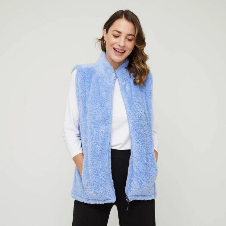 The Savannah Coral Fleece Vest is a wardrobe must-have that is great for layering during those cooler days running errands or even exercising in the park with its polyester fleece fabrication, zip through design and classic fit. Wear this essential over a long sleeved tee, pants and sneakers for an easy winter look!