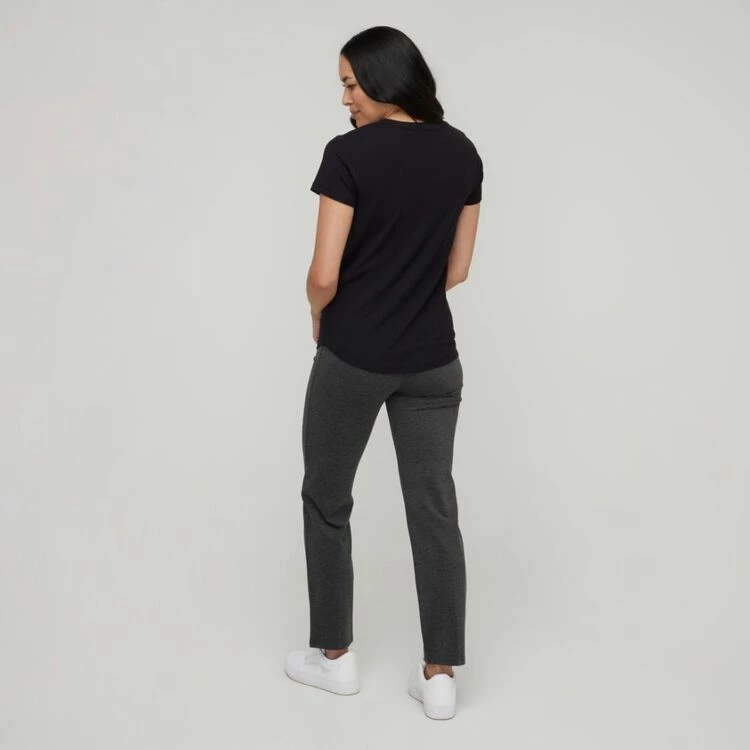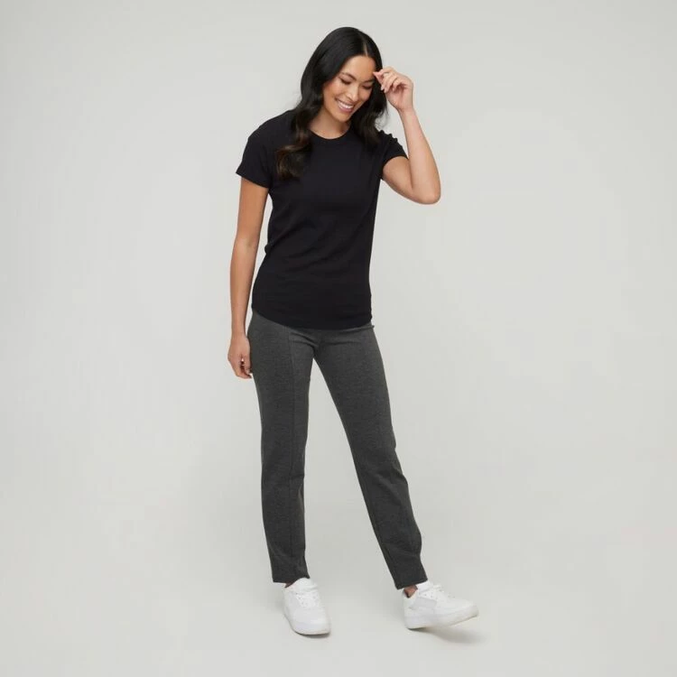 Experience luxury and comfort this winter with the Savannah Short Sleeve Rib T-shirt. This versatile ribbed top is crafted from soft, breathable fabric in two classic colours to perfectly complement your wardrobe. The timeless short sleeve design makes it ideal for layering, so you can wear it under cardigans or blazers for a polished look. Team it with a pair of slim fitting pants to create an elevated look that will have heads turning.