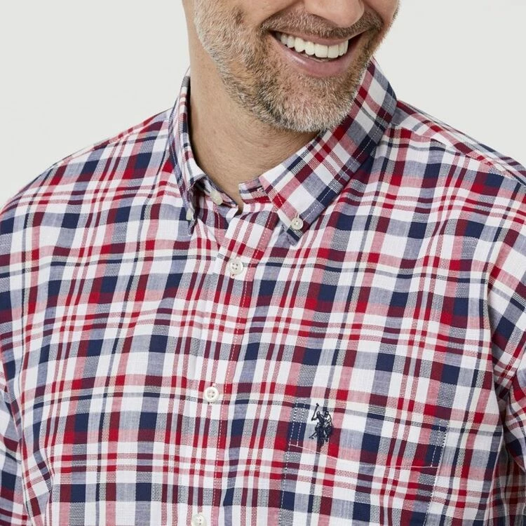 U.S. Polo Assn. Long Sleeve Check Shirt With Pocket Embroidery Red
